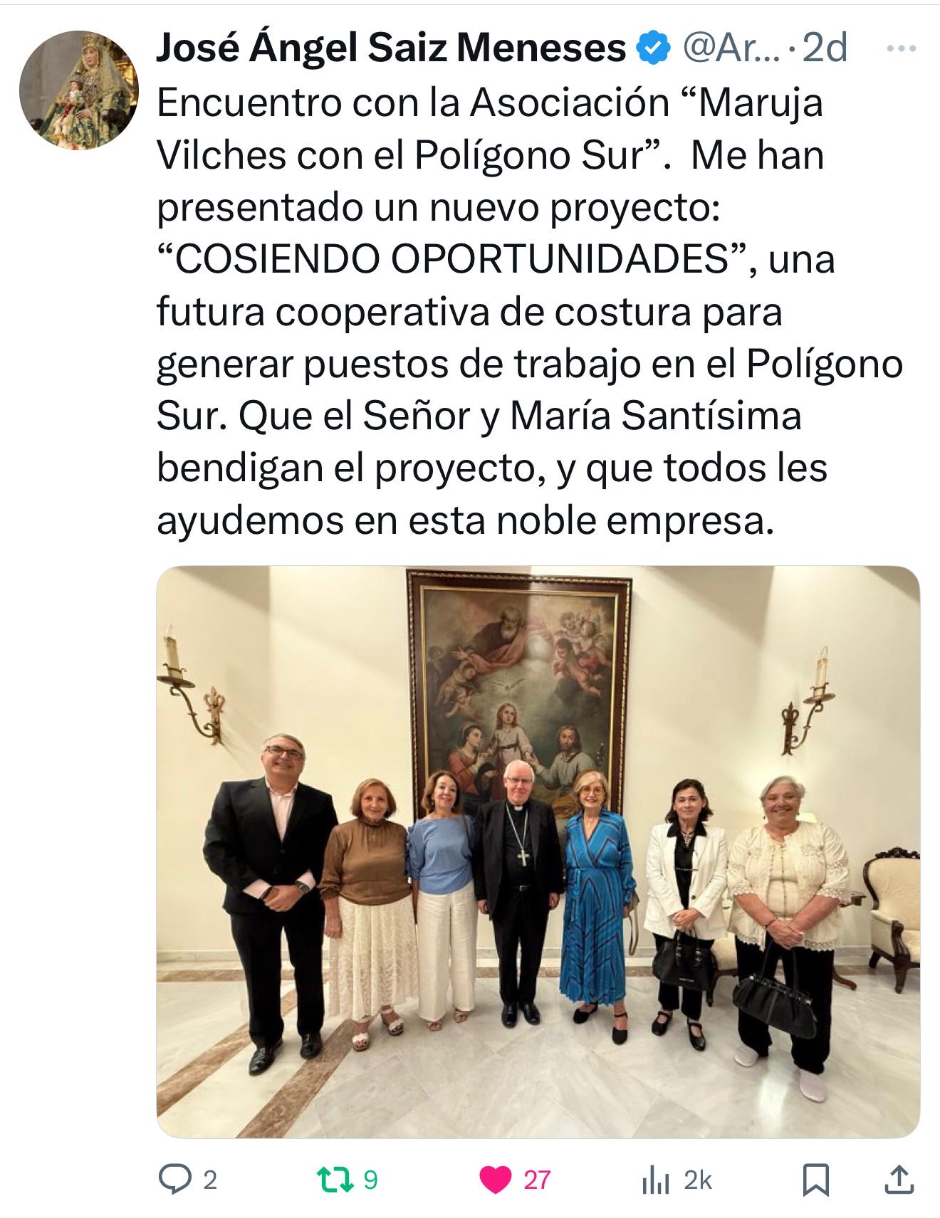 Durante el encuentro se le expuso al Sr. Arzobispo la labor desarrollada por nuestra Asociación en el polígono sur, así como de los retos a los que nos enfrentamos como el nuevo proyecto: "COSIENDO OPORTUNIDADES", una futura cooperativa de costura para generar puestos de trabajo en el Polígono Sur.