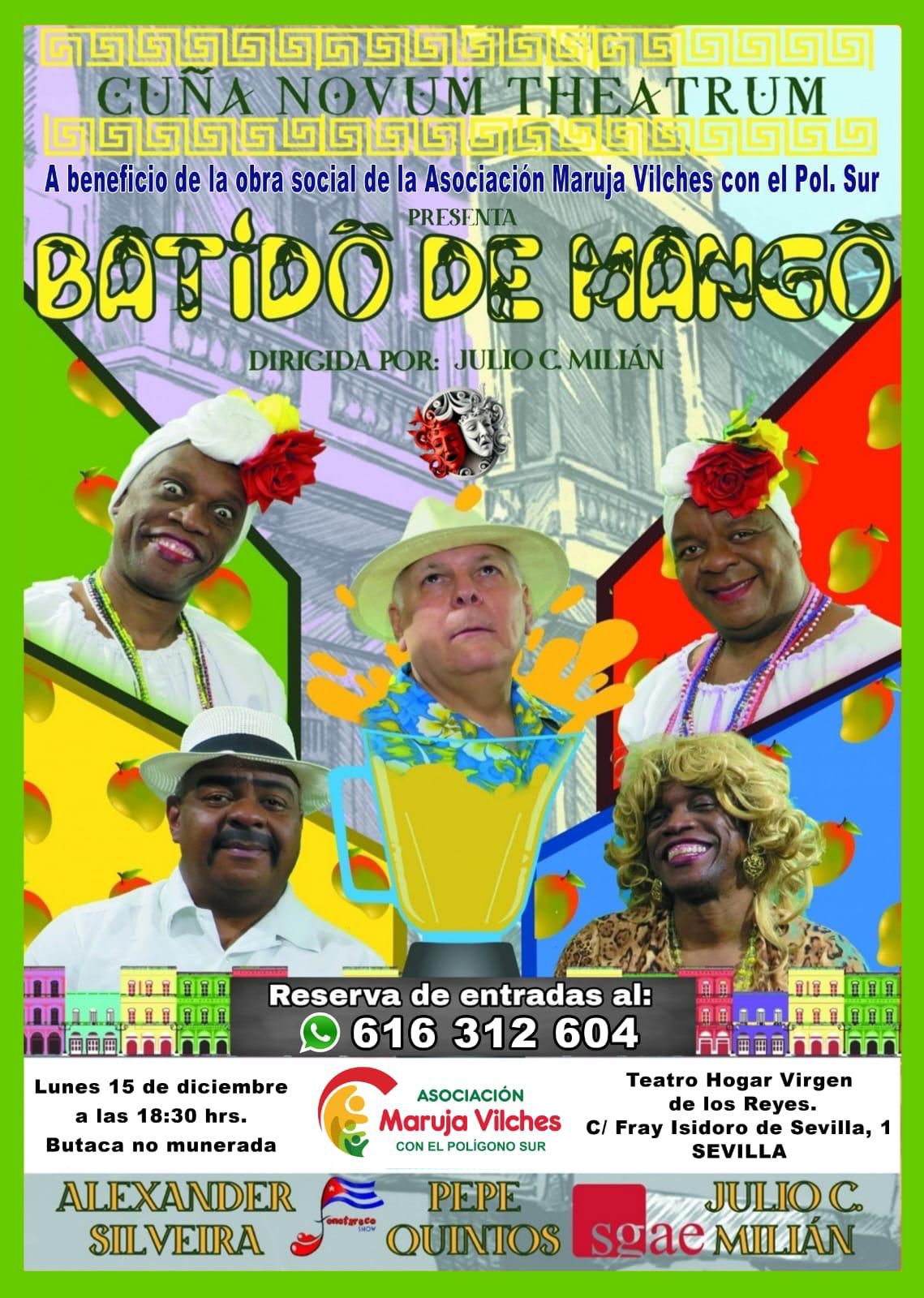 LA ASOCIACIÓN MARUJA VILCHES CON EL POLÍGONO SUR, organiza el Próximo 15 de diciembre a las 18:30 h en el Hogar Virgen de los Reyes, una obra de Teatro de la Compañía CUÑA NOVUM THEATRUM, titulada Batido de Mango, y por solo 10 €.